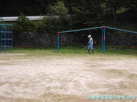 そんな中、用務員さんが校庭の草刈りをしてくれています。