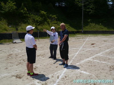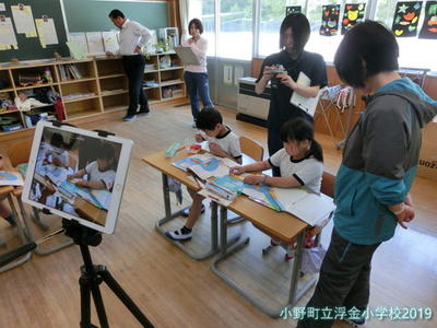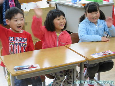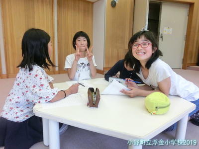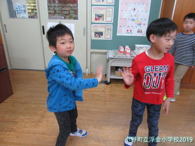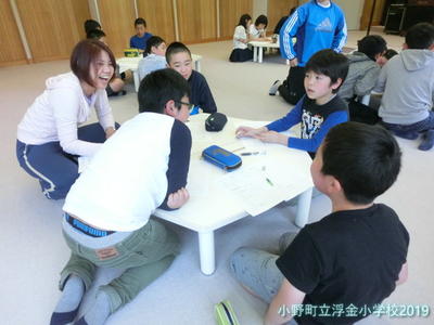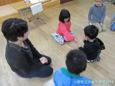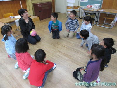 今週1年生が浮金小学校での1回目の外国語活動を学習しました。