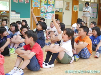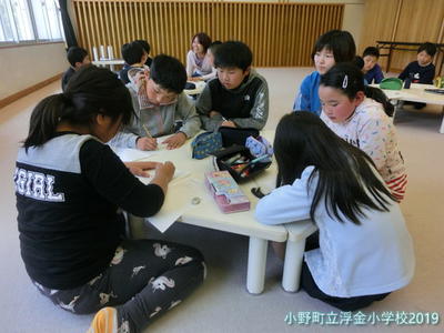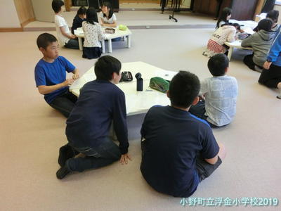 昼休み後の浮っ子タイムに高柴山遠足についてガイダンスと縦割り班ごとの話し合いをしました。