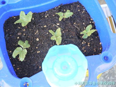 今週に入って1年生が蒔いたあさがおが次々と芽を出しています。