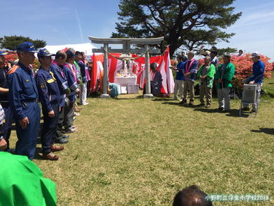 たくさんの方が山頂に集まっていました。浮っ子の姿もちらほら見られました。