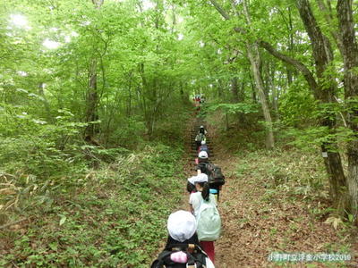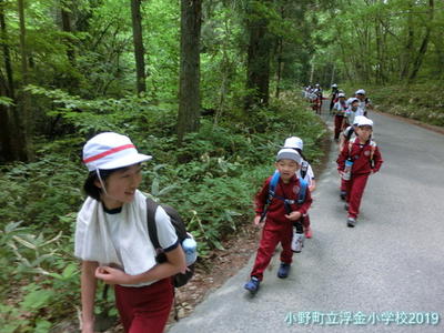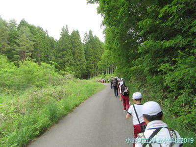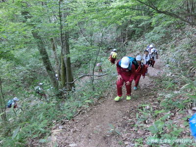 縦割り班の仲間で協力しながら,自分自身を励ましながら歩きます。