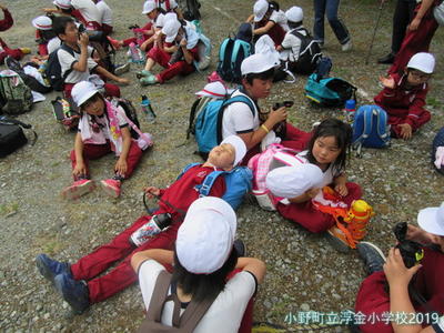 そんなとき,上級生がいつの間にか低学年の子どもの荷物を持ってあげたり,タオルで引いてあげたりしています。