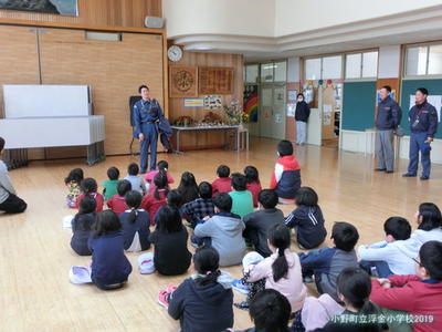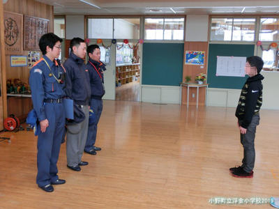 田村消防署小野分署から3名の署員の方に来校いただき,避難訓練の様子を見て,講話していただきました。