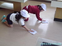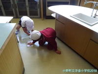 上級生のお兄さんお姉さんに教わりながら雑巾をかけたり、モップがけをしたりと最後までがんばりました。