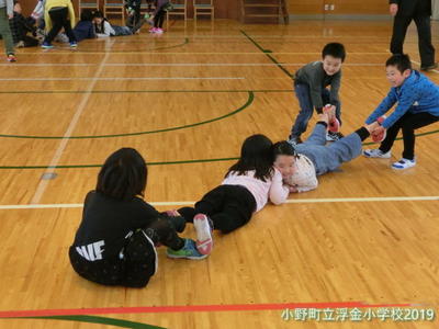 全く,軽めの遊びではありません。1年生も本気になって耐えて,引っ張っていました。