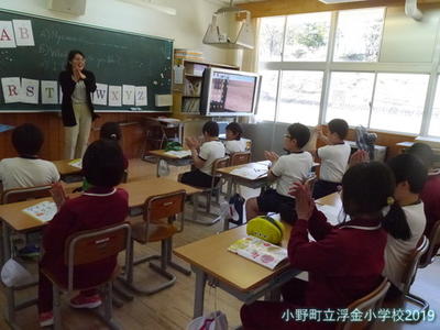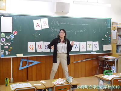 アルファベットの学習と自己紹介の英語表現の活動をしていました。