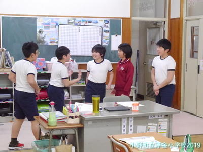 5年生は,きょろきょろ6年生や友達の動きを気にしながら取り組んでいます。