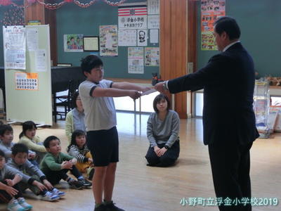 6年生の代表児童が「誓いの言葉」を述べました。続いて校長から認定証を手渡されました。