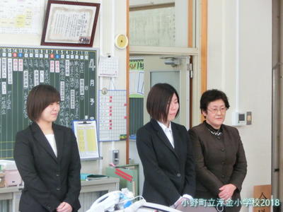 今回の異動により,2名の職員が浮金小学校へ着任しました。