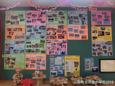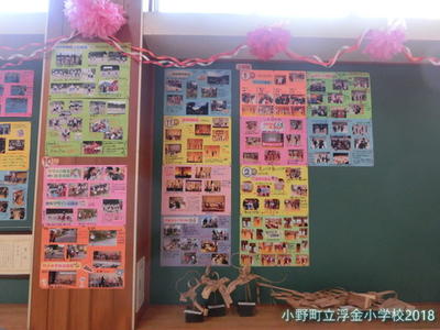 掲示板の前に立って眺めていると,浮金小学校の1年間が,子どもたちの活躍,成長が見えてきます。