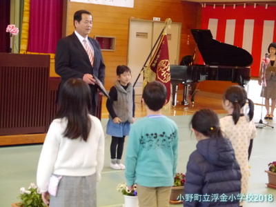 浮金小学校に4人の子どもが入学しました。
