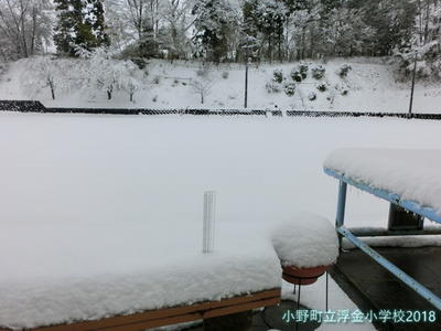 校庭のベンチ上 積雪14cmです。