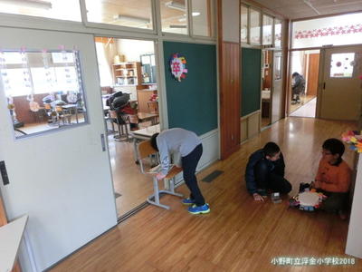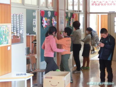 4,5年先生と職員で卒業式や控え室などの準備をしました。