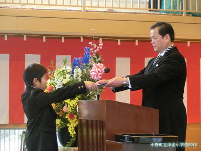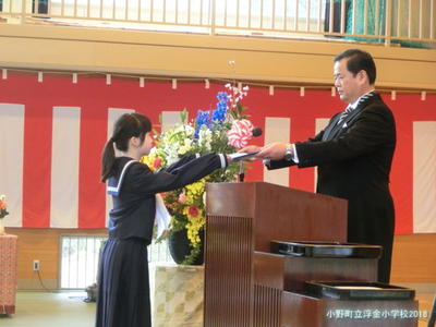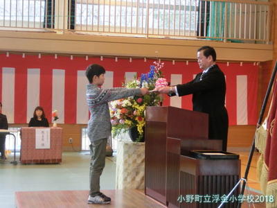 浮金小学校では,卒業証書授与式の中で,修了証書授与を行います。