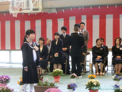 多くの方々に見守られながら,代表児童は,修了証書を受け取ります。