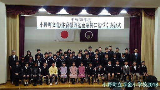 昨日、小野町文化・体育振興基金条例に基づく表彰式が、小野町勤労青少年ホーム小ホールで行われました。小学生・中学生・高校生が対象で、団体の部2校、個人の部50人のあわせて52件の表彰がありました。