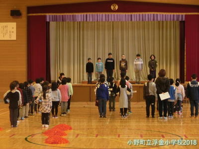 「浮金小学校として最後の年となるので,鼓笛も素晴らしい演奏になるように頑張ってください。」