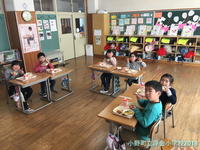 各学級での給食の様子です。みんな残さず食べましょうね。