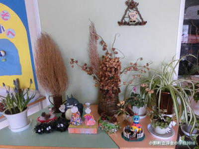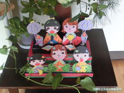 浮金小学校の玄関にも,手作り「ひな人形」が飾ってあります。