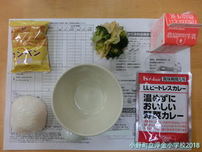 ・おにぎり ・ヒートレスカレー ・カンパン ・おひたし ・牛乳
