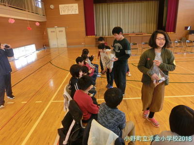 その後,6年生から1~5年生一人一人に手縫いのフェルトマスコットがプレゼントされました。