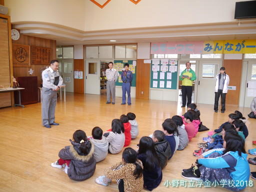 4日(火)、子どもたちへの予告なしの避難訓練がありました。緊急地震速報が鳴り大きな地震が発生し、その後2階家庭科室から出火するという想定で実施しました。田村消防署小野分署から3名の講師を招き、避難訓練の様子を見ていただき評価していただきました。