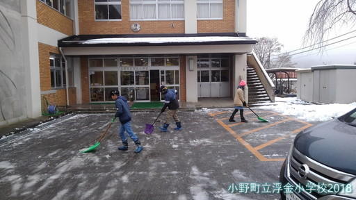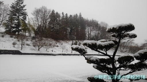 浮金は、昨夜から雪が降り始めました。今朝は雨に変わりましたが、校庭一面が真っ白です。ちょうど1年前の今日も雪が降り、一日で25㎝程積もったことを思い出しました。