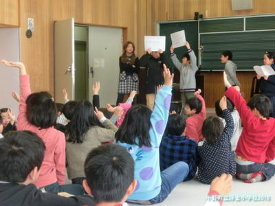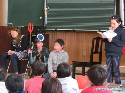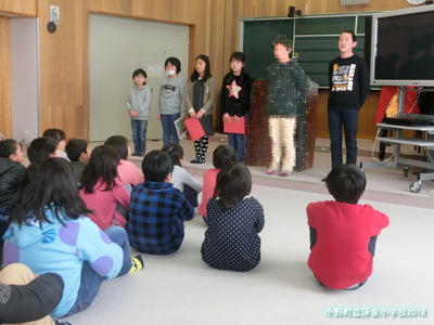 養護教諭の話では,まず,保健委員会による「冬休みの生活で気を付けること」の劇とクイズ発表がありました。