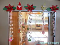 用務員の作っている様子を見て,作りたくなった子どもも手伝っている飾りもあります。