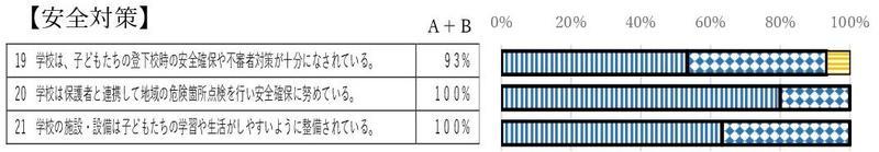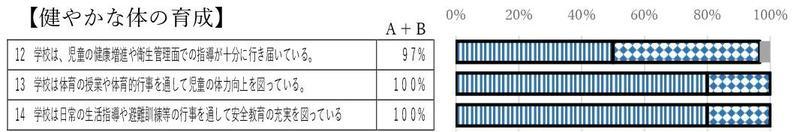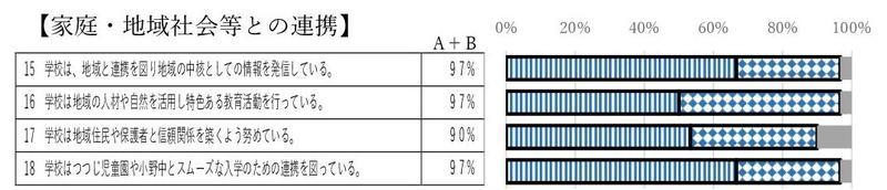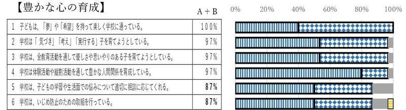 結果は3学期にお配りします。全ての項目で9割以上の方が肯定的な回答をしてくださっています。