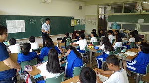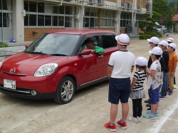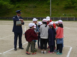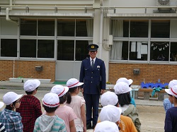 5月30日に、防犯教室を実施しました。飯豊駐在所の坂口様を講師に迎え、登下校時に不審者(車)に遭遇した場合の対処の仕方について学びました。登校班に車で近づき、道を尋ねながら同乗するよう促すパターンと、カメラを手にした大人の2人組が、記念写真を撮ろうと近づいてきたパターンの2パターンで実施しました。