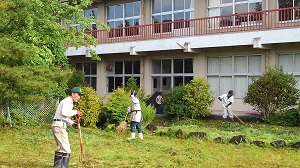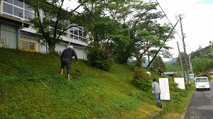 今朝は、6時からPTA奉仕作業がありました。たくさんの皆様にお集まりいただき大変きれいになりました。本校は、浮金地区全戸がPTA会員となっていますので、地域の方々みんなで奉仕作業をしてくださいます。ありがとうございました。