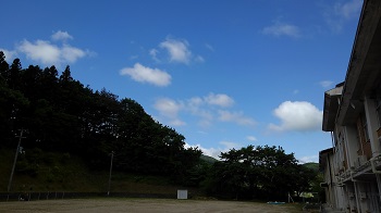 今日は、全校生で高柴山へ行ってきます。青空と白い雲で爽やかな天気となりました。