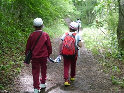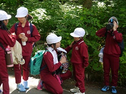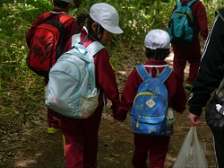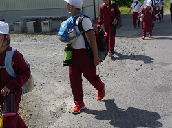 「自然を感じる」「粘り強く最後まで頑張る」「協力・助け合い」の3つの目的を確認して、先ほど(8時40分)学校を出発しました。