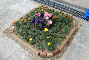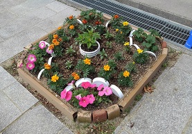 すると、用務員さんから、「もう少し花壇らしくしたいのですが」と提案がありました。囲いをして、土を盛って 、段差を作って・・・と。