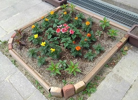 その花壇が完成しました。花がついてくると、もっと見栄えがすると思いますがいかがでしょうか。