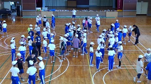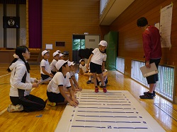 体育館で仲間作りゲーム A組:末澤先生(浮金小)による算数の授業
