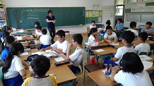 平成32年の4月に4つの小学校が統合され新たにスタートします。それに向けて、今年度から町内4小学校の同学年児童の交流を図っていくことになりました。今日がその1回目で、町内の6年生が小野新町小に集まり授業交流をしてきました。