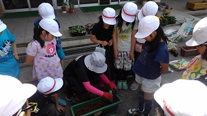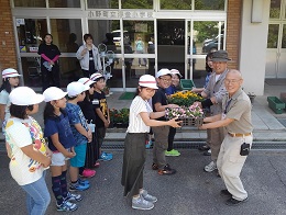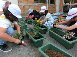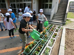 6月8日、人権擁護委員の皆様が来校され、たくさんの花をいただきました。「命を大切にする心」「みんなで協力し合う心」「相手を思いやる心」を花を育てることを通して学んでいきます。お花に詳しい用務員の平山さんに苗の植え方を教わり、子どもたちは声を掛け合い協力し合いながら活動していました。