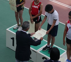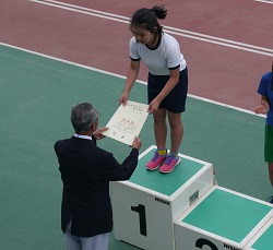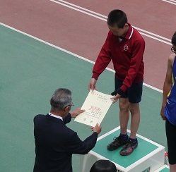 結果は、女子ジャベリックボール投げで1位、男子走り高跳びで1位、男子80mハードルで3位と3人の6年生が優勝・入賞の活躍を見せました。しかも、女子ジャベリックボール投げは大会新記録でした。残念ながら5年生の1名は入賞とはなりませんでしたが、初めての陸上大会への参加で自己ベストに近い好タイムを出すことができました。みんなよく頑張りました。