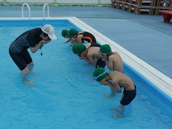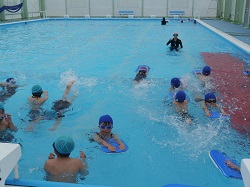 6月12日(火)に、今年度最初の水泳の授業がありました。残念ながら学校のプールではなく、全校生で町のB&Gプールに出かけ行いました。6名の1年生にとっては、入学して初めての大きなプールで少し緊張感があるようです。2年生以上の子どもたちは、この日を待っていたのか生き生きと泳ぎ出します。さて、今年は誰が一番泳ぎが上達するのかな?