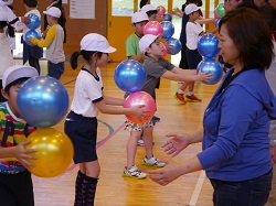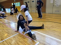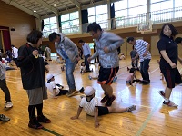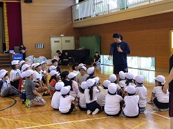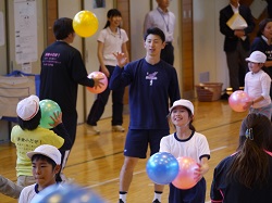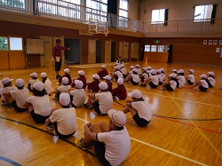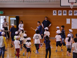 6月17日は、午前中に授業参観をし、午後はPTA行事である「親子ふれあいDAY」を実施しました。今回は親子で運動をしようと企画し、県教育委員会の家庭教育応援プロジェクト事業の一つである親子の学び応援講座とタイアップさせていただき、子どもたちを健康に導く運動プログラム ”BALL GAME”を実施しました。講師として、このプログラムを開発した国際ビジネス公務員大学校の先生方と、スペシャルゲストとして福島ファイヤーボンズの 猪狩 渉 選手が来てくださいました。体育館いっぱいに広がって親子で運動をしましたが、たくさんの笑顔と笑い声がありました。