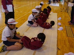 タオルでつながる上級生と下級生 1年生を優しく励ます6年生