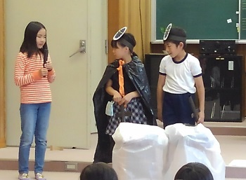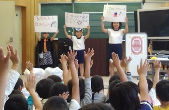 今日の浮っ子タイムは歯っぴー集会でした。よい歯の表彰と保健委員会によるむし歯予防の劇がありました。むし歯になったことのある歯が1本も無かった児童が38名中16名で、そのうち6年生が4名もいます。これからも歯磨きをして、健康な歯でいられるようにしましょう。保健委員会の皆さん、劇の準備をありがとう。