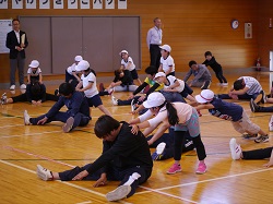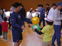 福島ファイヤーボンズの猪狩選手も子どもたちと一緒に運動しました。