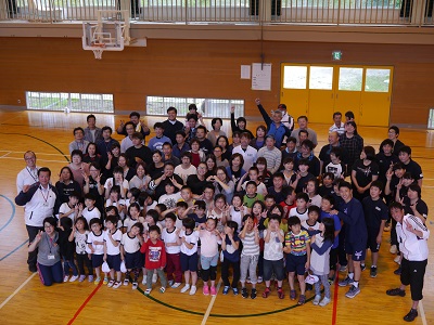 最後には、猪狩選手 対 浮金小全児童38名 でバスケットボール対決です。さて結果は・・・