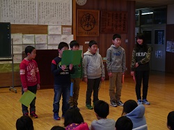 2年生は、自分の成長の記録をまとめたアルバムの発表会を開き、保護者の方へ、ここまで育ててもらった感謝の気持ちを伝えました。