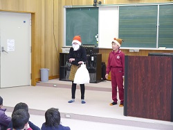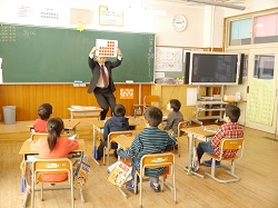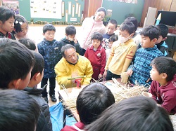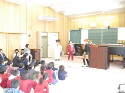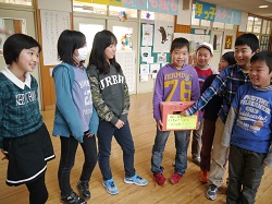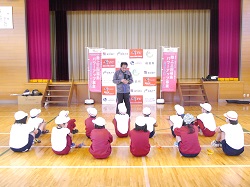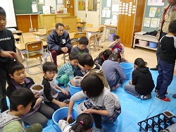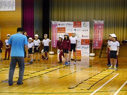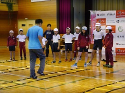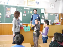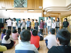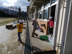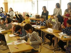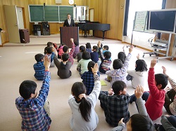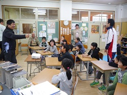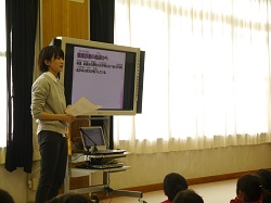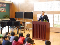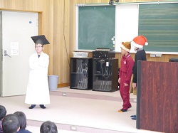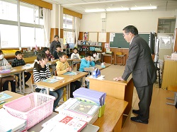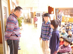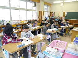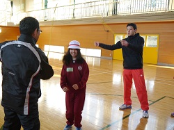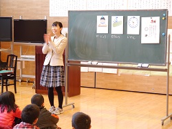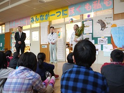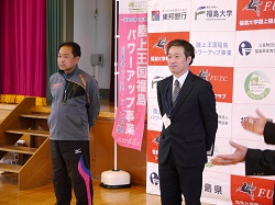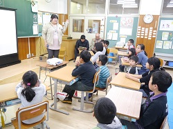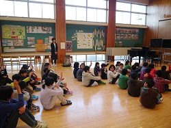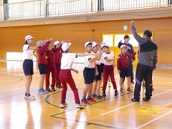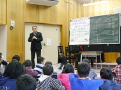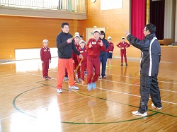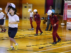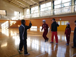 2016年1月14日 15時07分 県中教育事務所の体育専門アドバイザー、岡村先生と菊池先生にお越しいただき、なわとびの指導をして頂きました。様々な技のアドバイスも頂いたのですが、子どもたちの興味を特にひきつけたのが「ダブルダッチ」でした。「大なわとびは跳べるけど、2本の縄を跳ぶなんて…。」と思っていた子もいましたが、アドバイザーの先生方が縄を回し始めると、あっという間に全員が飛ぶことができてしまいました。アドバイザーの岡村先生は、「とても楽しくて、工夫ができるスポーツ」とお話していたので、浮金小学校も、ぜひ休み時間などを使って練習したいと思います。