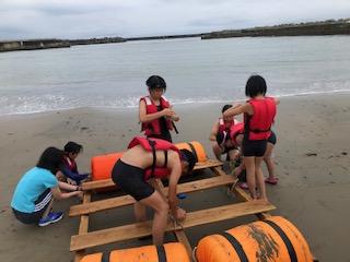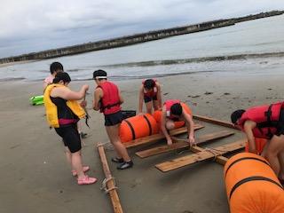 2基のいかだが完成しました!これから海に出て漕ぎます!